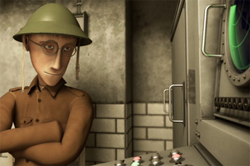 Um jovem soldado britânico, durante um turno de vigia, presumo que para os lados de Dover, a braços com um problema no radar.