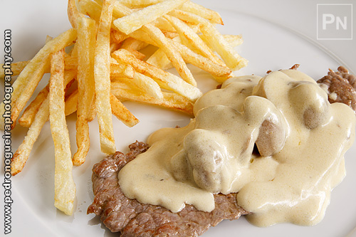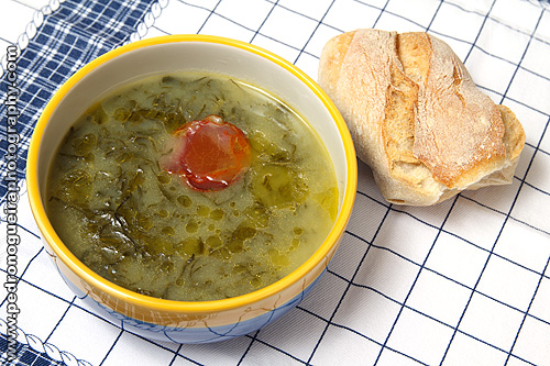 Let’s eat a “Caldo verde” soup and a beef steak sandwich with some vegetables and mayonnaise.