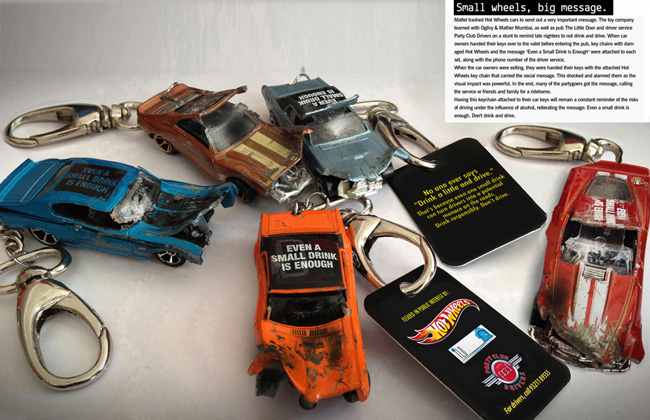 A Mattel amachucou algumas das suas miniaturas "Hot Wheels" e criou uma gama de porta-chaves para fazer passar uma importante mensagem.